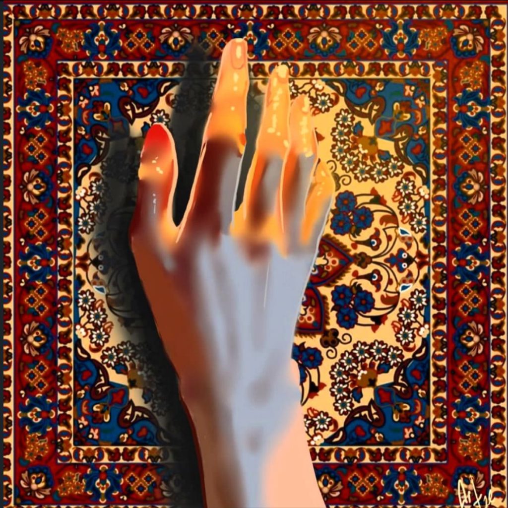 “Şimdi söyle; aşk yok ve devam et” sözünü estetik ve ilgi çekici kullanarak sanatsal bir vibe için tablo tutan eller görseli ile sözü destekleyerek bütünlük oluşturan tasarım .
